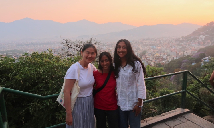 Civil engineering student Grace Jiang and mechanical engineering students Devasena Sitaram and Nishita Tonangi traveled to Nepal as part of the Georgia Tech chapter of Engineers Without Borders (EWB-GT) Nepal Water Sanitation Project. While there, they gathered data, met with residents, and evaluated potential solutions for a long-term, sustainable water supply system for the village of Chisopani Bhirke.