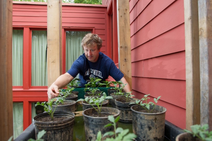 Aquaponics is the simultaneous cultivation of fish and vegetables using the same space and resources. Van Ginkel is passionate about using this concept to help city dwellers grow their own food by making use of the small, often ignored spaces such as abandoned warehouses, rooftops, basements, porches, vacant lots, or even fish taco stands along the beltline.