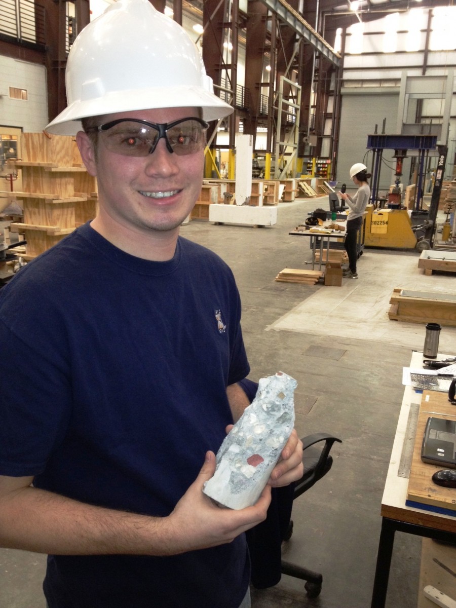 McKay’s research team was also interested in making sure that the new building materials could withstand the stress of an additional disaster. Little research has evaluated the performance of recycled aggregate concrete under earthquake loading, so McKay decided to focus his graduate research there. He recently presented his preliminary findings at the fall convention of the American Concrete Institute (ACI) in Toronto.
