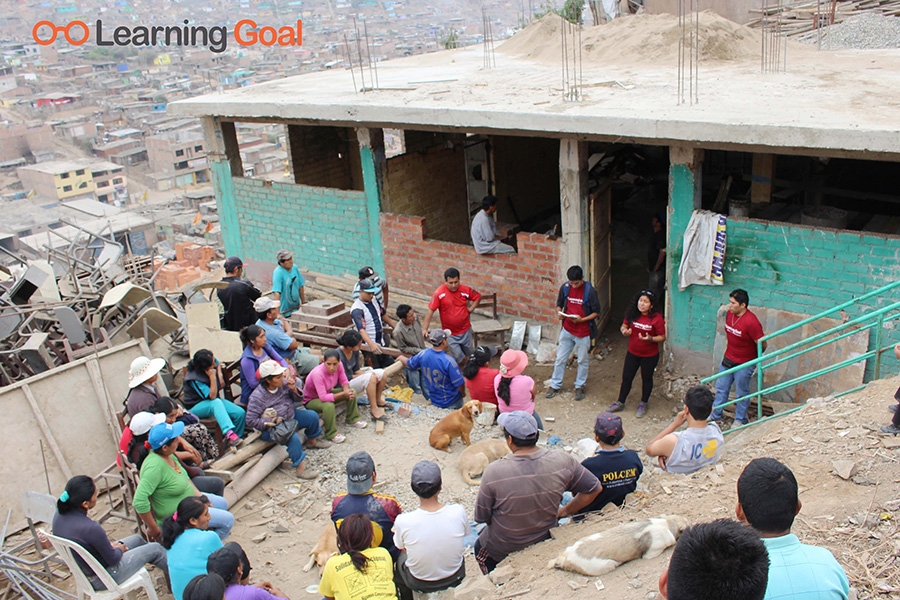 ![]() The ribbon-cutting in Ventanilla, Peru, for the first classroom Learning Goal built. (Photo Courtesy of Learning Goal.) |