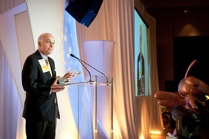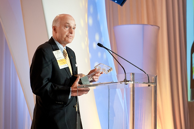 Howard Tellepsen Jr. accepts the Dean Griffin Community Service Award at the Georgia Tech Alumni Association's Gold & White Honors Gala February 12. (Photo Courtesy of the Georgia Tech Alumni Association.)